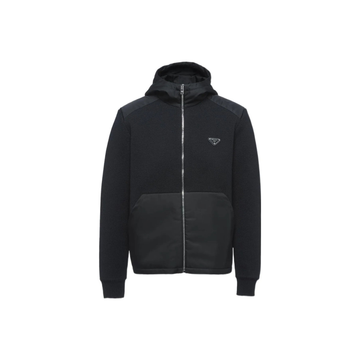 Prada black zipper hooded solid color jacket for men